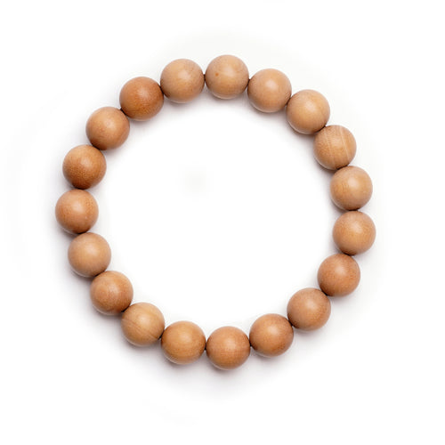 VIVIDOORA: 10MM White Sandalwood Bracelet - Authentic India Mysore Sandalwood Beads Handcrafted, Soothing Aromatic Wood Bracelet for Buddhist, Meditation, Prayer, and Daily Wear, Gift for Men and Women
